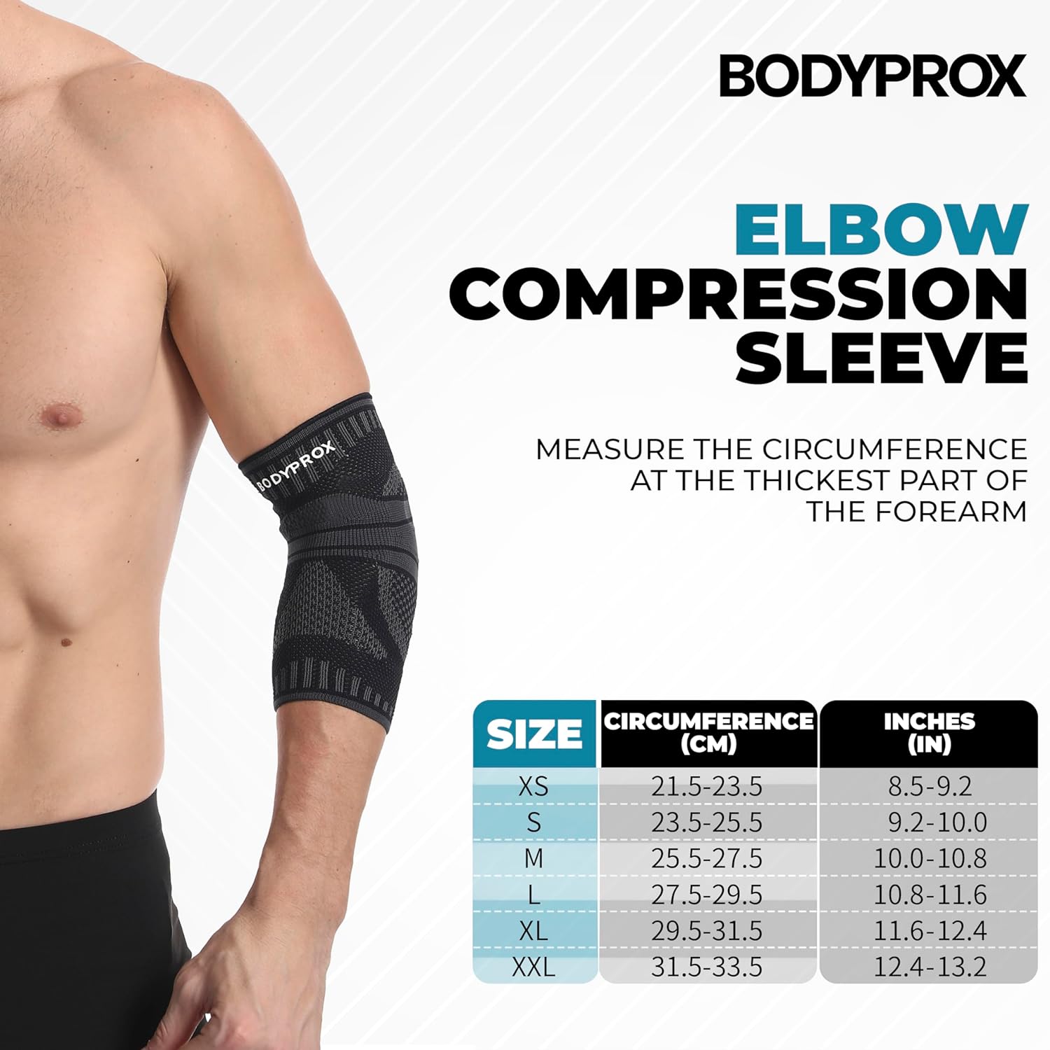 La manica a compressione per il gomito Bodyprox è progettata con maestria per fornire un supporto delicato ma efficace per il gomito, rendendola perfetta per atleti e persone con uno stile di vita attivo. È ideale per alleviare il disagio causato da gomito del tennista, gomito del golfista e altre tensioni legate al gomito.